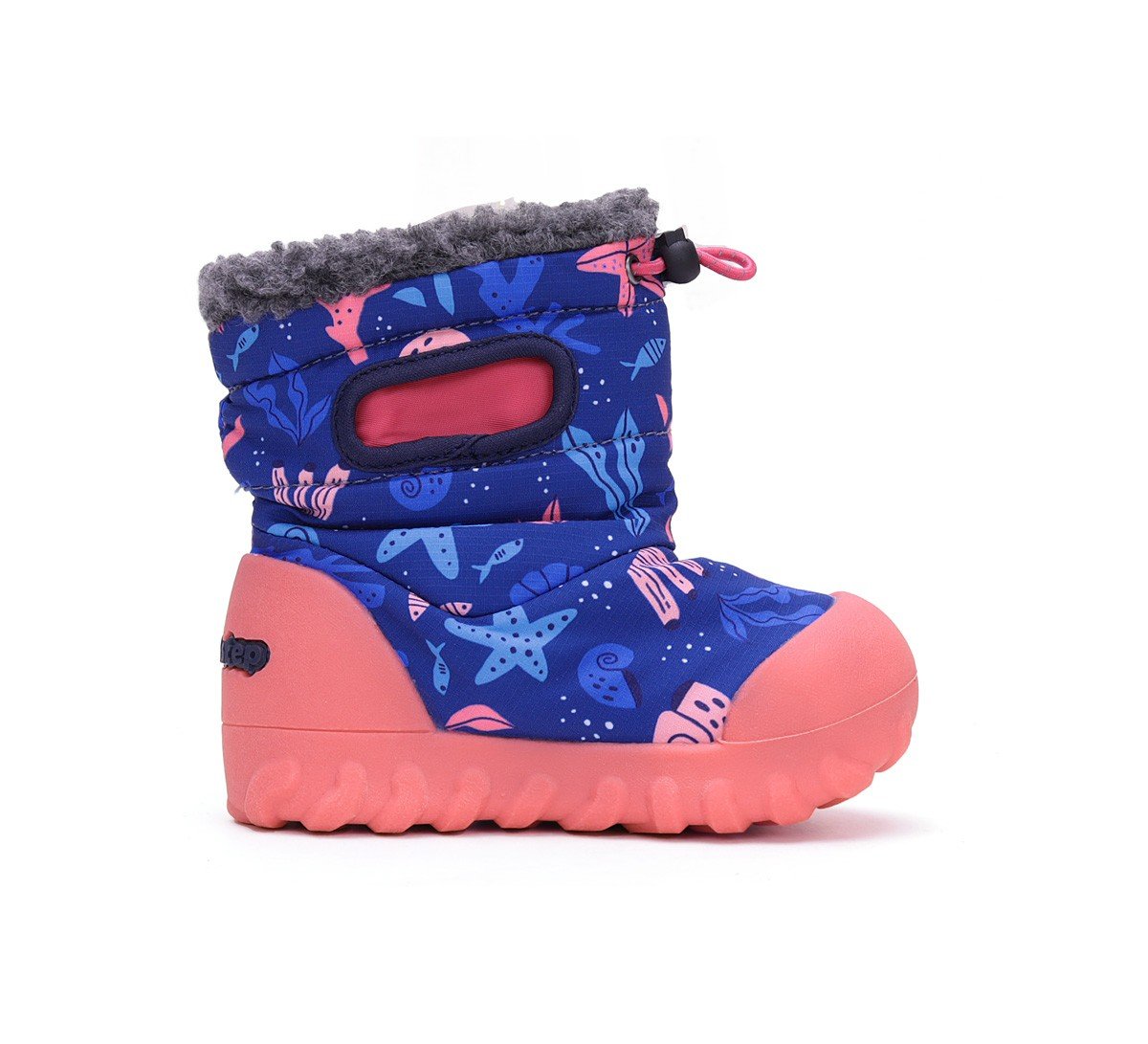 Išorė pagaminta iš vandeniui atsparios tekstilės, bato viduje yra dirbtinio kailio pamušalas.