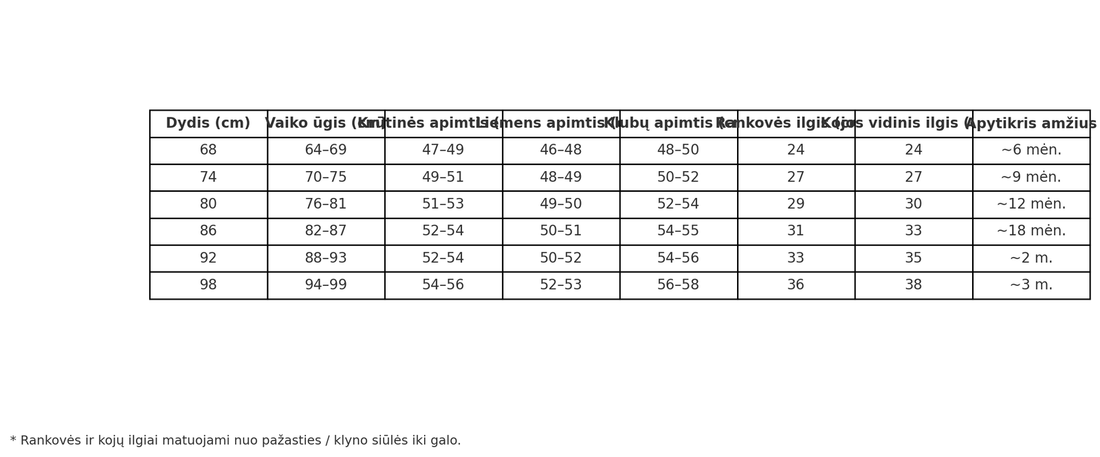 | Pasirinkite dydį | 68, 74, 80, 86, 92, 98 |